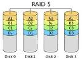 The most commonly used RAID solution today, RAID 5 combines the efficiency of spanning data across multiple drives, but also creates unique parity to each drive allowing for full recovery of data should you experience a disk failure. This option is popular because it only requires a minimum of 3 drives and retains significantly high data transfer rates.